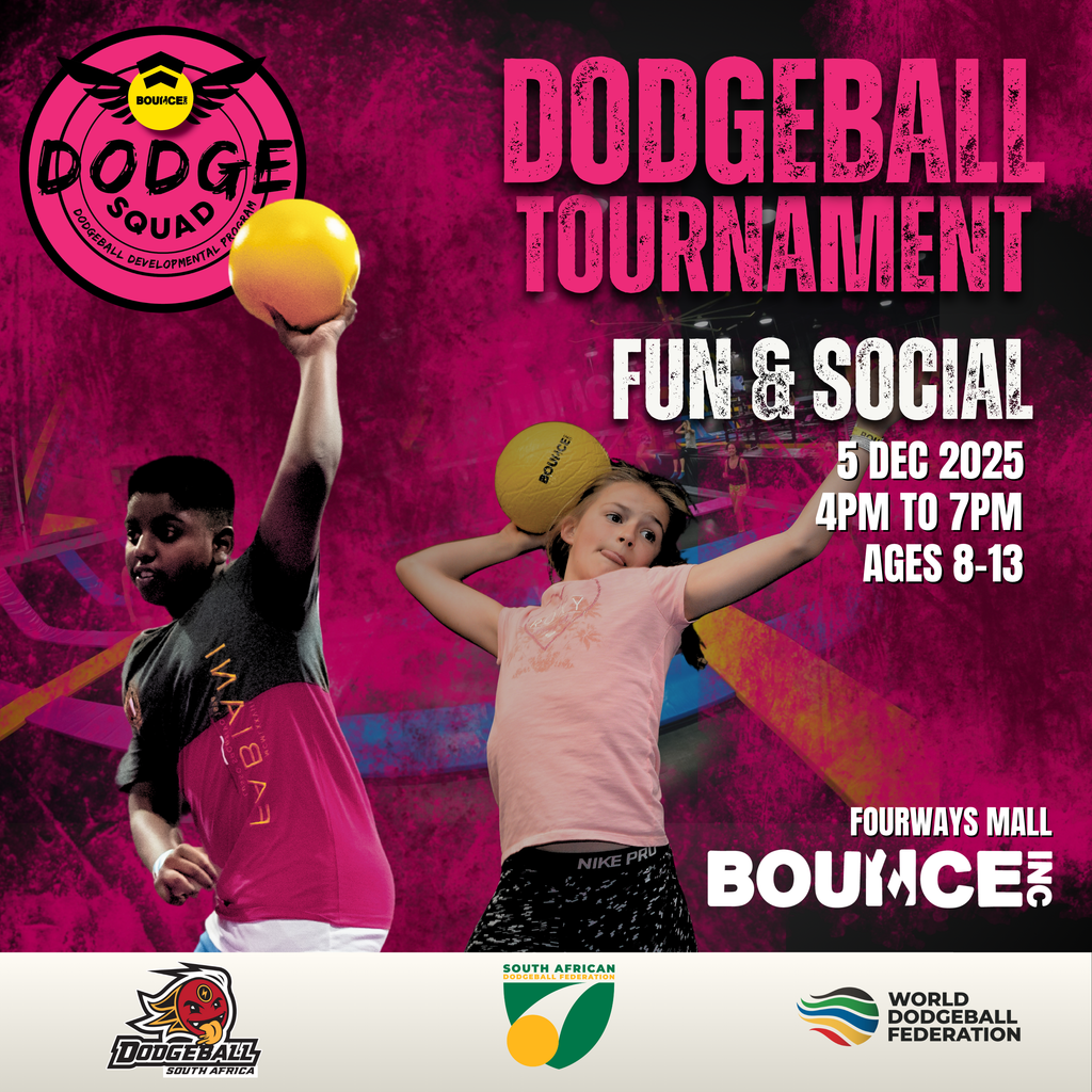 Enjoy 3 hours of jump time, and access to our DodgeSquad Dodgeball Tournament, on the 5th of December 2025 at your BOUNCE Fourways Mall. Grab your mates and gear up for an AWESOME time!